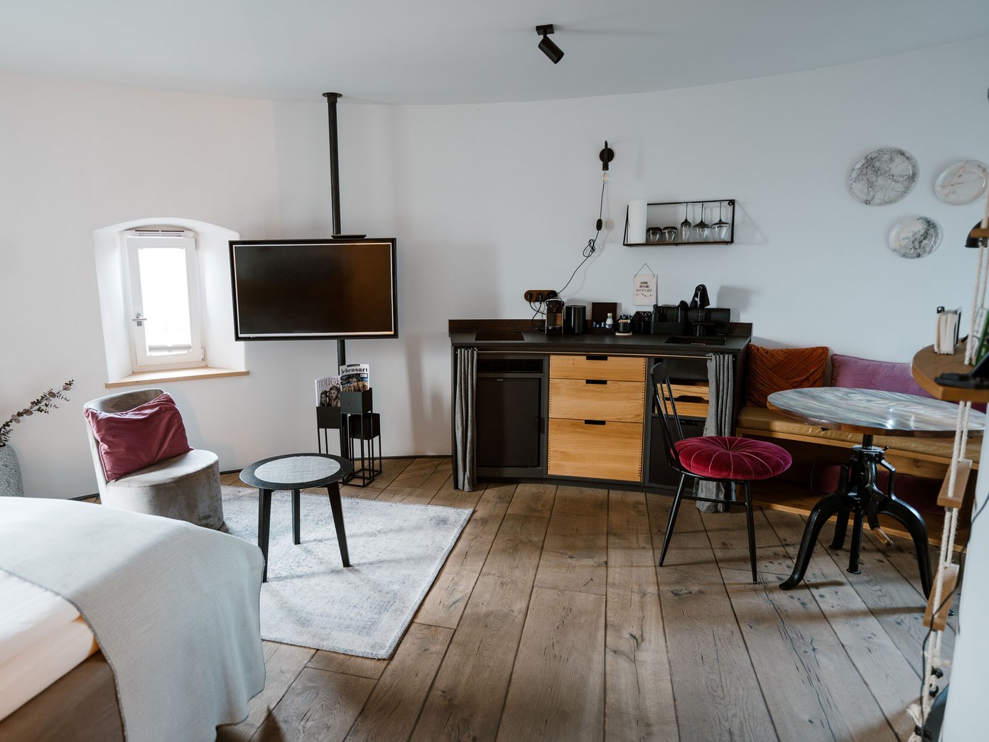 Ebene 4 steht für genau diese besondere Mischung aus Charakter, Rückzug und Weitblick. Warme Materialien, liebevolle Details und die eigene Stimmung dieses Ortes machen den Aufenthalt besonders. Und wie jede Ebene im Wasserturm erzählt auch sie ihr ganz eigenes Kapitel – als Teil eines Hauses, das auf jeder Etage neu begeistert.
