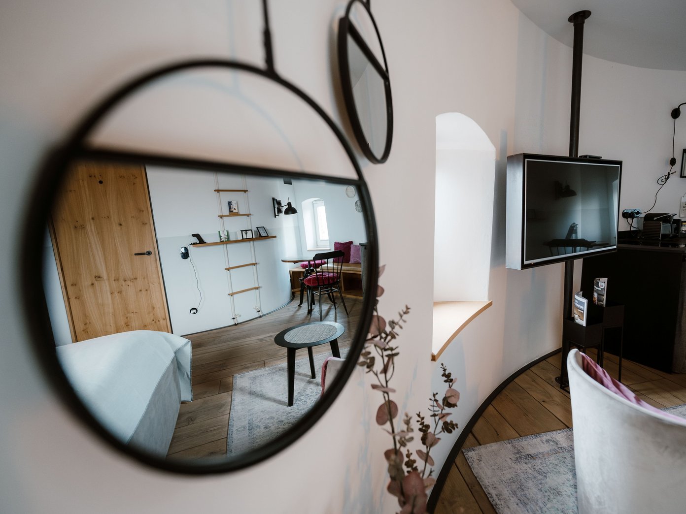 Auf der vierten Ebene fühlt sich der Wasserturm noch einmal anders an. Die besondere Architektur, das runde Raumgefühl und der Blick nach draußen schaffen eine Atmosphäre, die leicht, ruhig und zugleich außergewöhnlich wirkt. Hier wird aus einer Übernachtung ein kleines Erlebnis – mit dem Gefühl, dem Alltag ein Stück weiter entrückt zu sein.