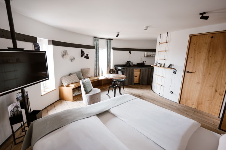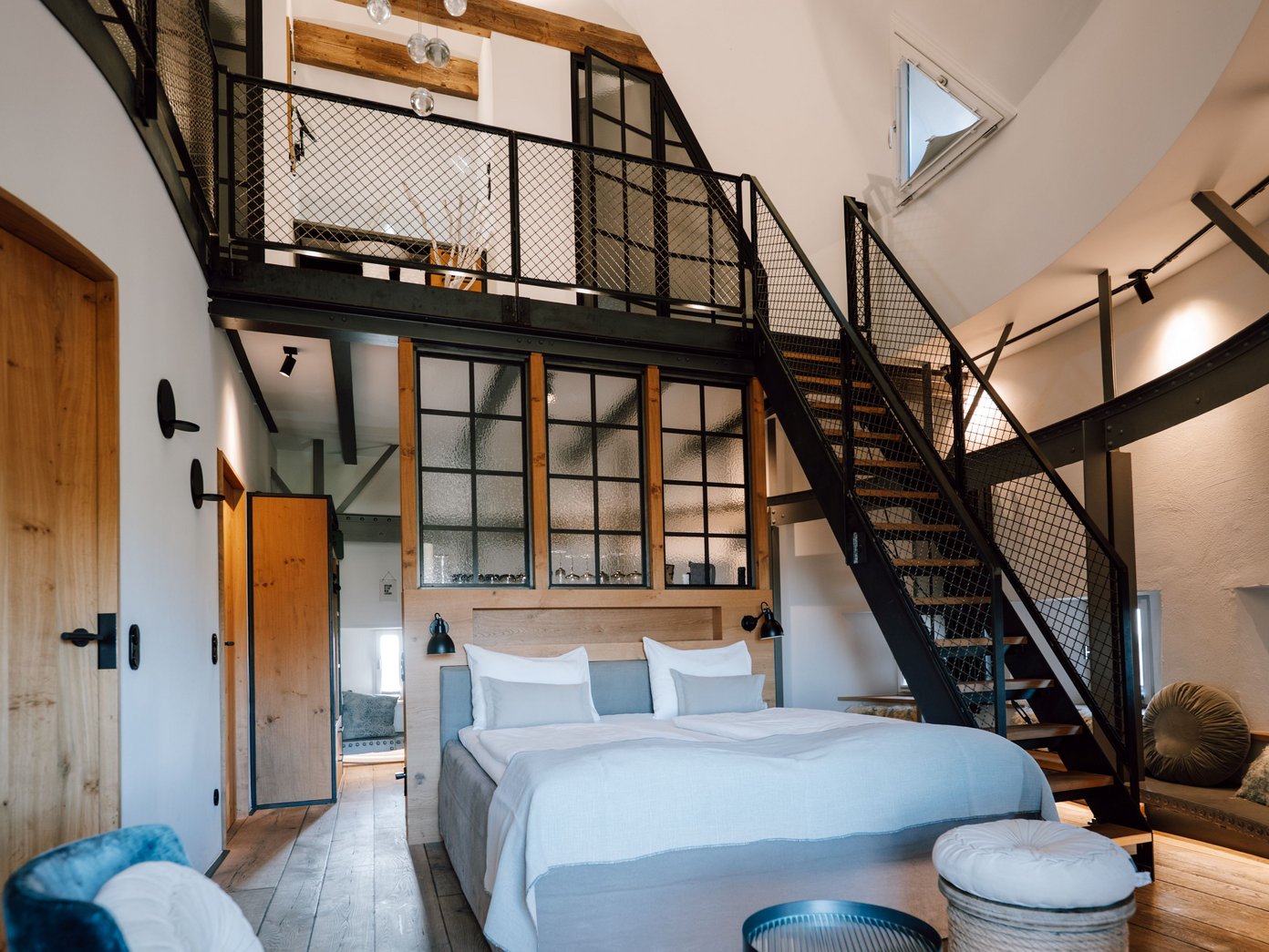 Auf Ebene 6 zeigt sich der Wasserturm von seiner wohl eindrucksvollsten Seite. Hier oben treffen Weite, Ruhe und stilvolles Design aufeinander und schaffen einen Ort, der sich fern vom Alltag und zugleich ganz nah am Besonderen anfühlt.