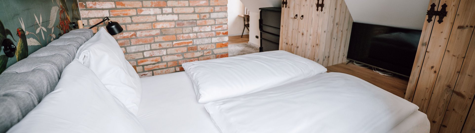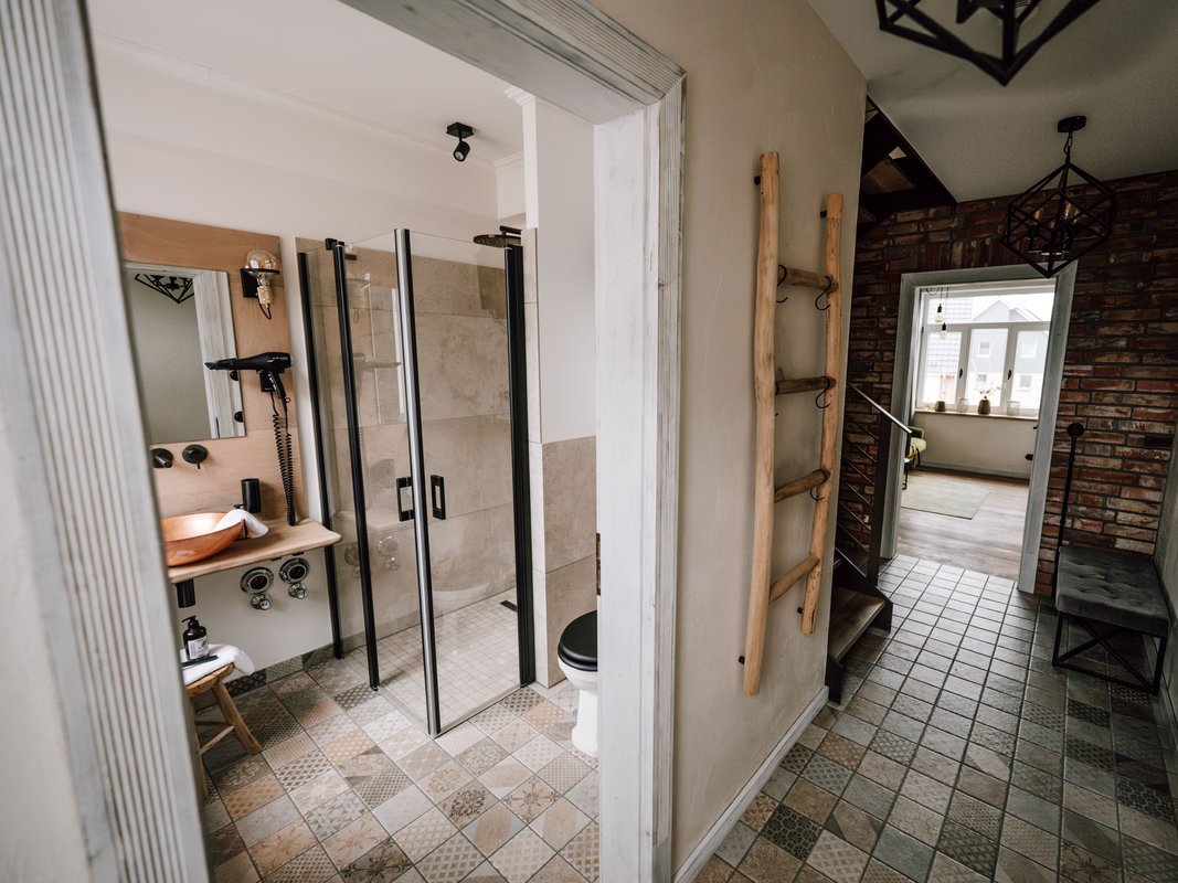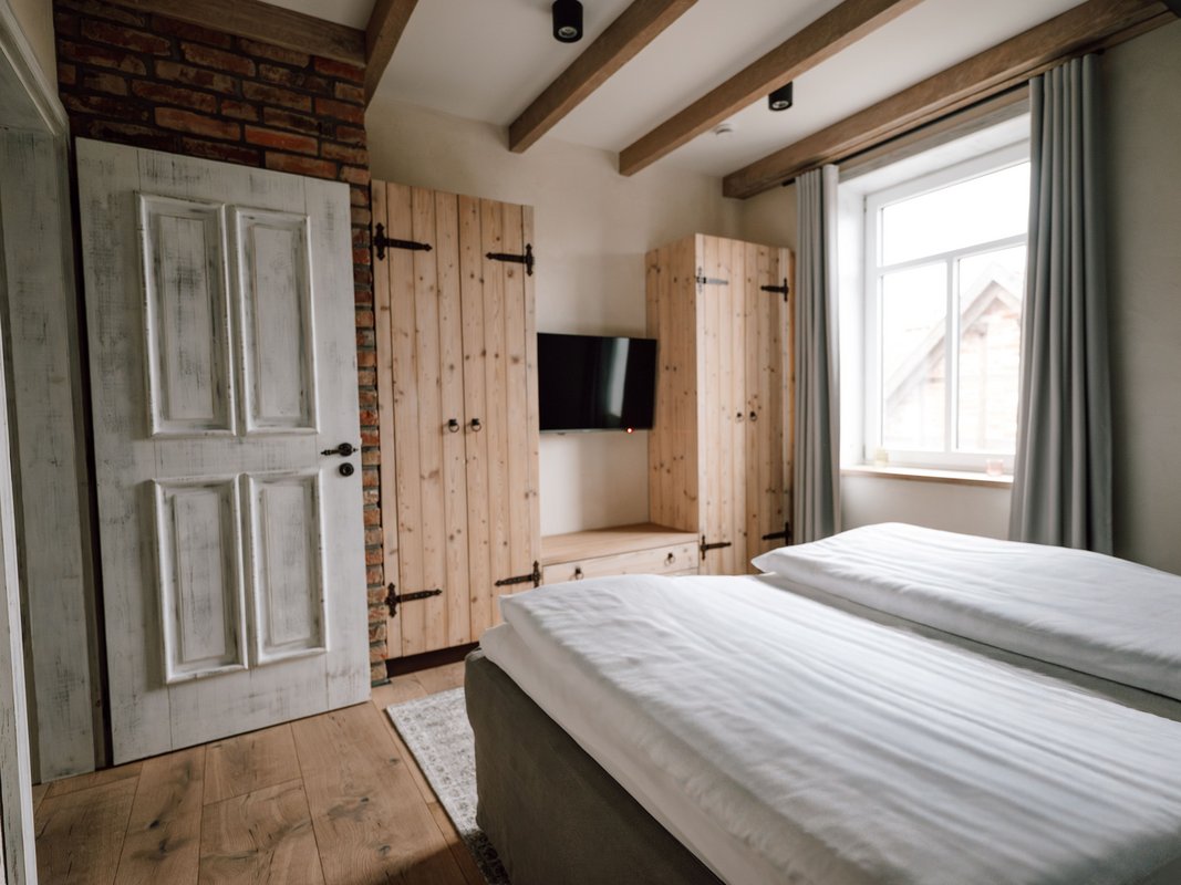 Unser Verwalterhaus 1 ist ein Apartment für alle, die ihre Auszeit gern großzügig, entspannt und mit besonderer Atmosphäre genießen möchten. Auf zwei Ebenen entsteht hier ein Wohngefühl, das eher an ein stilvolles Zuhause auf Zeit erinnert als an eine klassische Unterkunft. Viel Platz, warme Farben und liebevoll abgestimmte Details machen dieses Apartment zu einem Ort, an dem man schnell ankommt und gern bleibt.